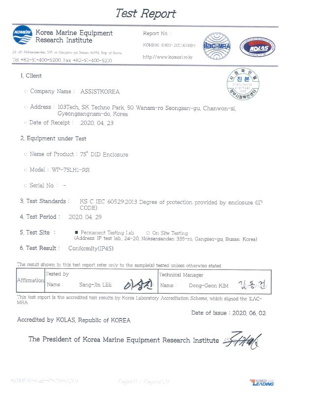 75" DID Enclosure IP45 µî±Þ ÀÎÁõ Ãëµæ